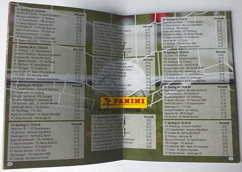 Panini Rückrunden Spielplan 2003 / 2004 für je